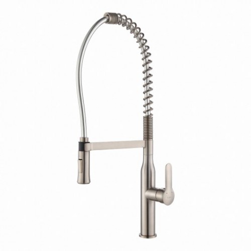 NOLA KPF-1650 - кухонный смеситель с одним рычагом для управления напором и температурой воды. Подача воды осуществляется в двух режимах: прямая струя и распыление. Мягкие резиновые насадки в распылительной головки предотвращают тяжелую воду и известковый нарост, что делает обслуживание легким.