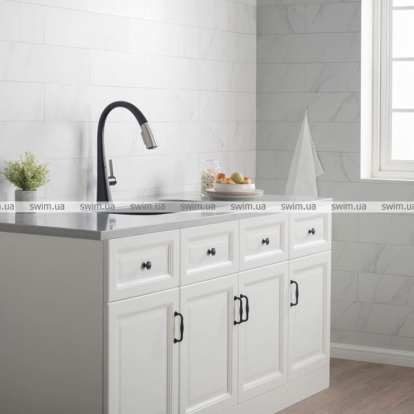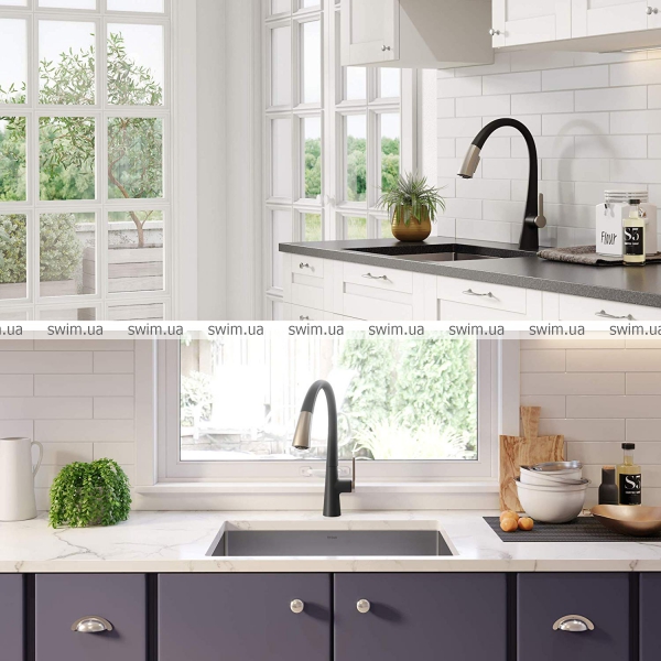 - Поворот смесителя на 360º обеспечит полный доступ к кухонной раковине.