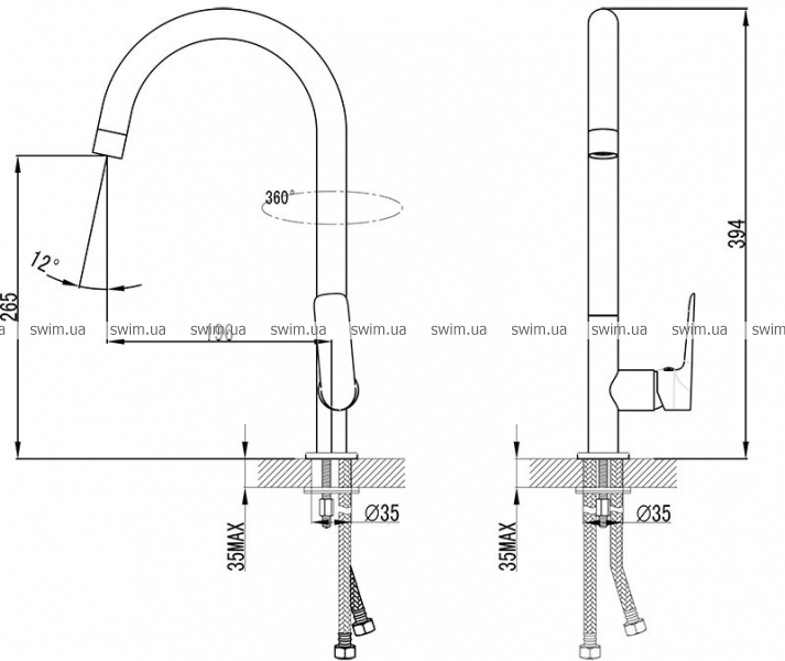 - соединительные шланги: гибкий 400 мм, диаметр G3/8