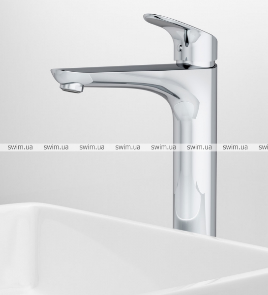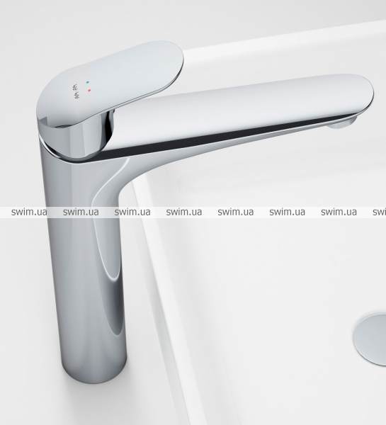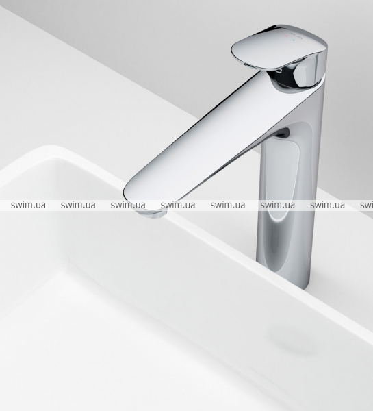 Высокий вылил предоставляет смесителю изящный вид и идеально подойдет для раковины с глубокой чашей, а благодаря широкой зоне движения ручки управлять температурой воды еще проще.