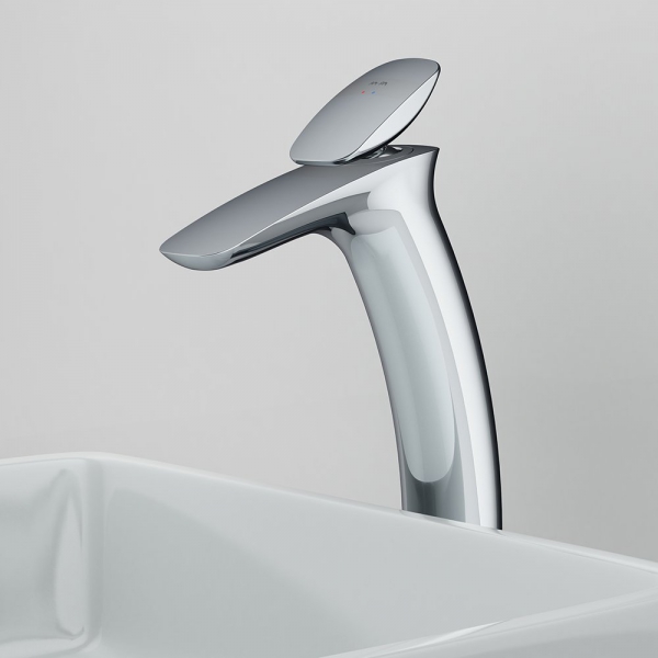 Эргономичность: безупречно продуманная форма ручки идеально ложится в ладонь. Наклон и плавный изгиб корпуса смесителя обеспечивает удобство использования на высокой раковине.
