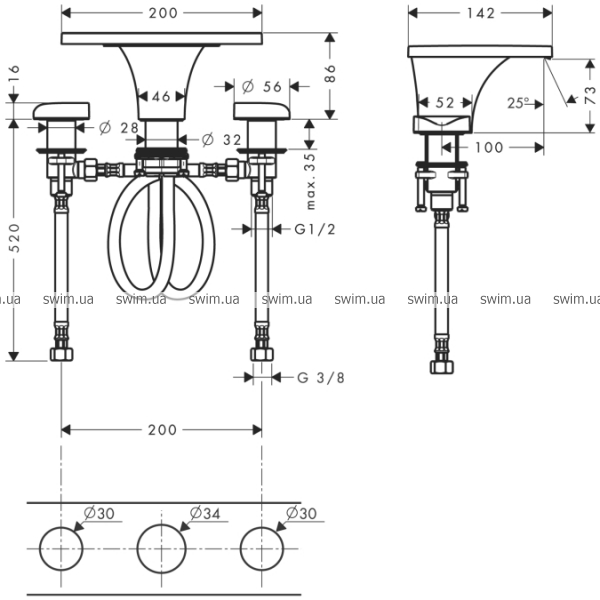 - Шланговое удлинение для смесителя на 3 отверстия (38959000)
