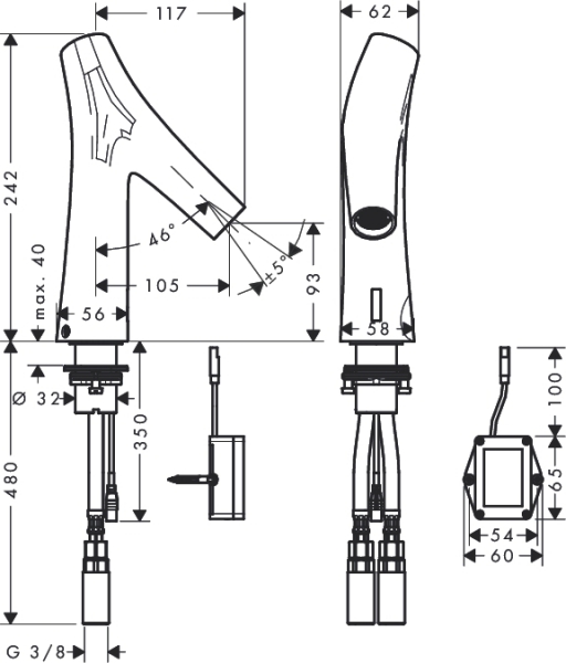 - функция может быть ограничена при использовании для раковин с возвышением или с очень широким краем раковины (> 75 мм)