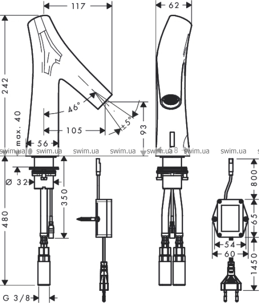 - функция может быть ограничена при использовании для раковин с возвышением или с очень широким краем раковины (> 75 мм)