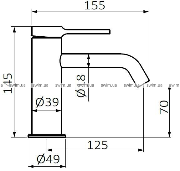 - длина излива 125 мм