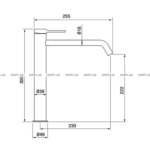- длина излива 230 мм