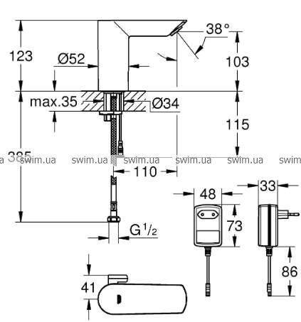 Смеситель для умывальника Grohe Bau Cosmopolitan E 36453000