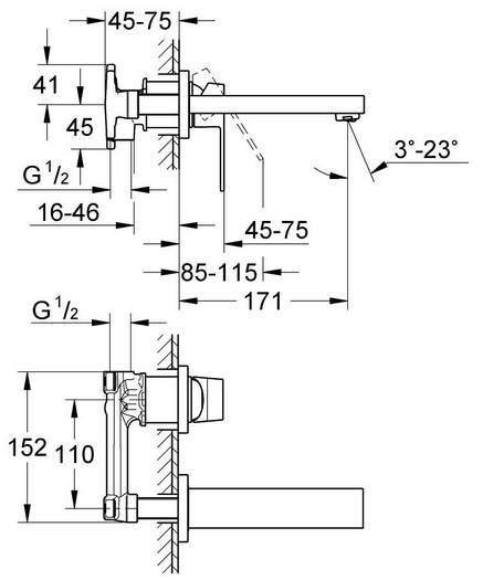 Этот элегантный смеситель для раковины на 2 отверстия специально разработан для настенного монтажа в комбинации со скрытым блоком модели 23200000.