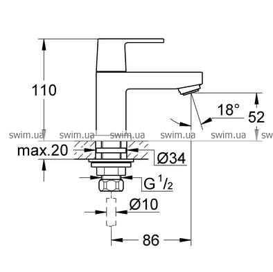 Этот смеситель для раковины из коллекции Eurocube – лучший выбор для оснащения гостевых туалетных комнат или санузлов в подвальных помещениях, обеспеченных только холодным водоснабжением.
