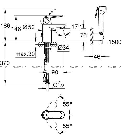 Смеситель для умывальника Grohe Eurosmart 23125000 с гигиеническим душем