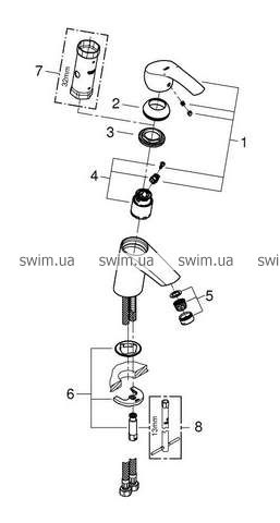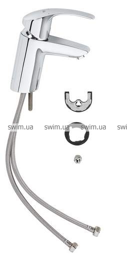 Установка и подключение смесителя к воде не вызывает проблем. В комплекте со смесителем поставляются шланги гибкой подводки. Их длина 350 мм и стандарт подключения 3/8 дюйма. Кроме гарантийного талона и простой и понятной инструкции, смеситель укомплектован системой быстрого монтажа GROHE QuickFix.