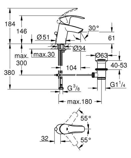 Установка смесителя на раковину не вызовет проблем, поскольку инструкция очень понятная и смеситель оборудован системой ускоренного монтажа GROHE QuickFix.