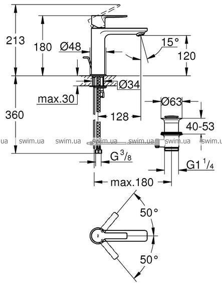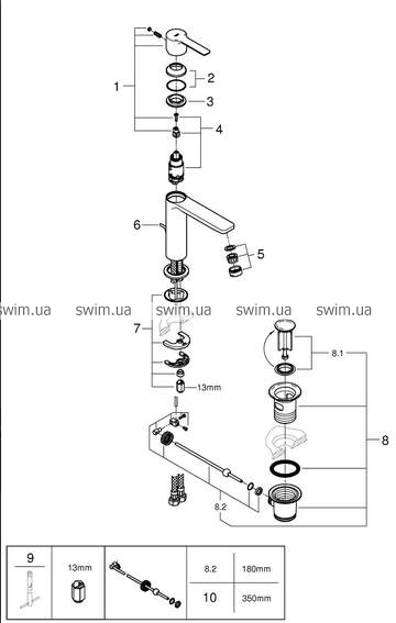 - высота смесителя: 180 мм