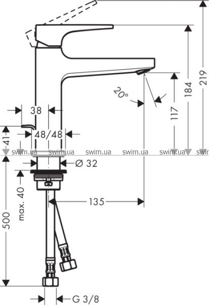 - состоит из: однорычажный смеситель для раковины, слив/перелив