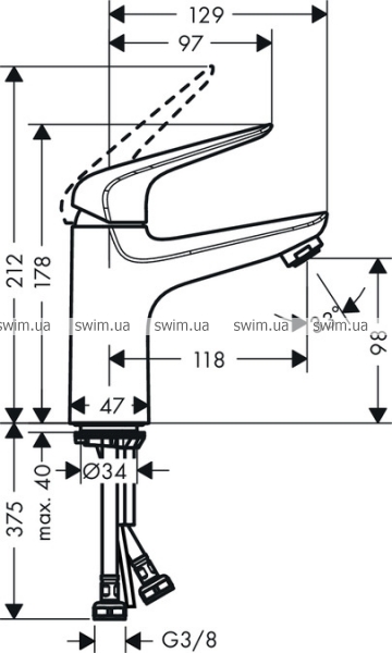 - состоит из: однорычажный смеситель для раковины, слив/перелив