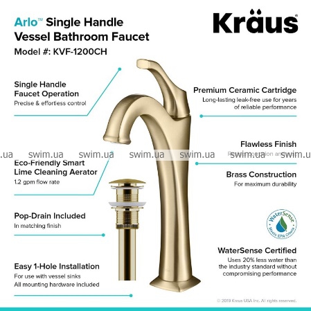 Смеситель для умывальника Kraus Arlo KVF-1200BG