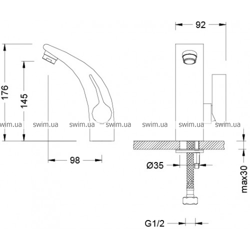 - Монтируется на мебель или столешницу, через единое отверстие