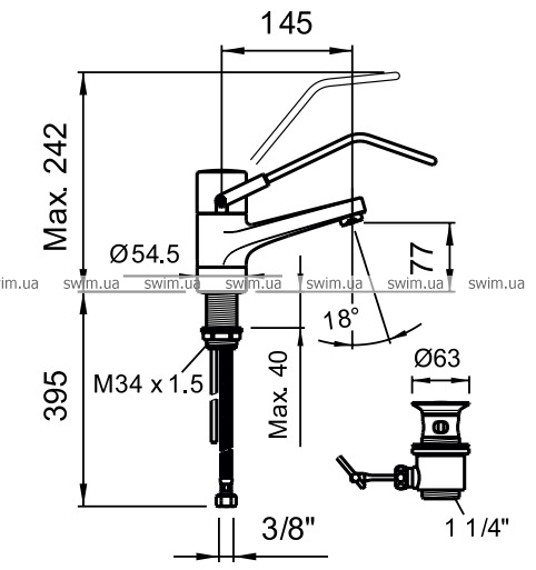 - Фиксированный излив 110 мм