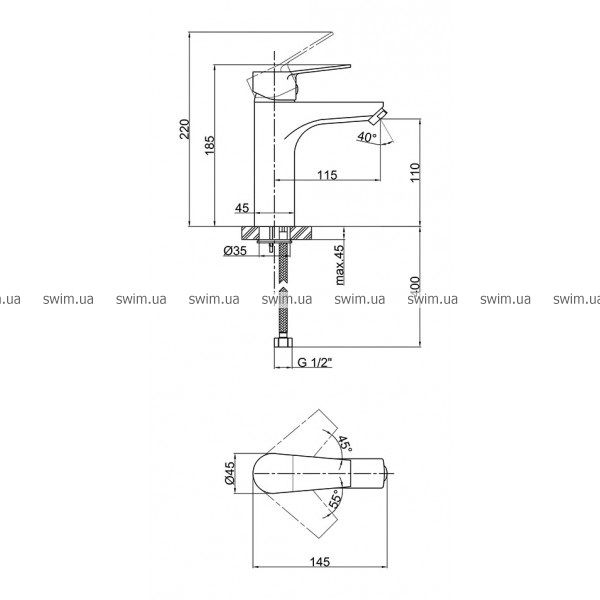 - Высота излива, мм 110