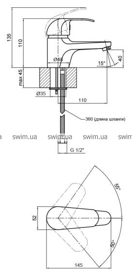 - Диаметр подключения 1/2"