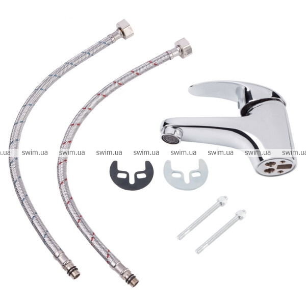 - Комплектация Смеситель, гибкая подводка, крепежи.
