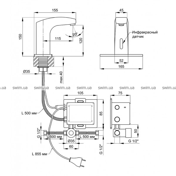 - Дополнительные характеристики Батарейки в комплект не входят (АА 4 шт.). Расстояние срабатывания: 20-30 см. Функция автоматического выключения подачи воды (после 3 сек).