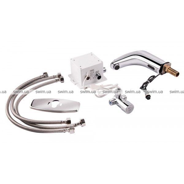 - Комплектация Смеситель, гибкая подводка, блок питания, крепежи.
