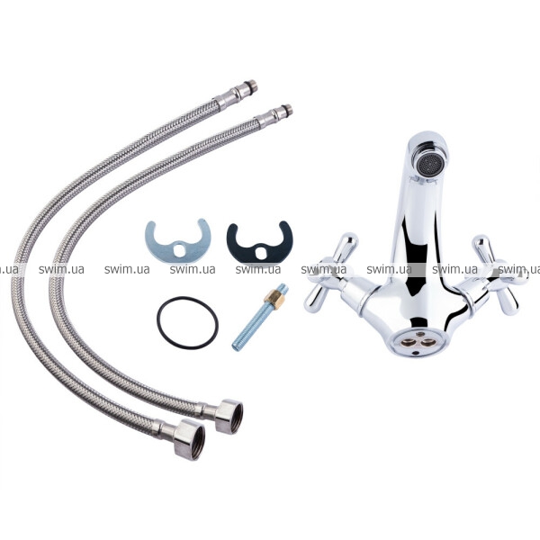 - Комплектация Смеситель, гибкая подводка, крепежи.
