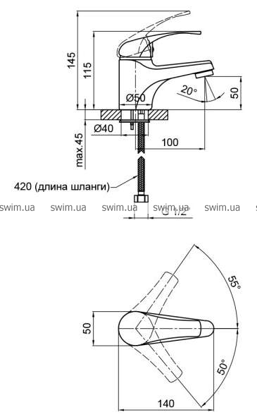 - Комплектация Смеситель, гибкая подводка, крепежи.