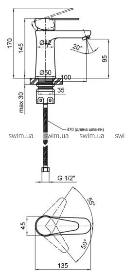 - Комплектация Смеситель, гибкая подводка, крепежи.
