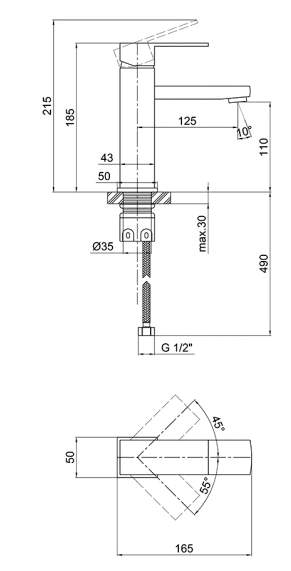 - Высота излива, мм 110