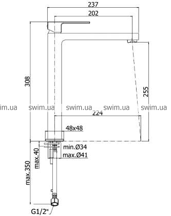 - Вид монтажа: горизонтальный, на борт умывальника