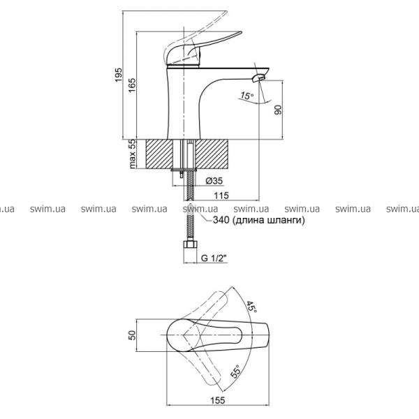 - Комплектация: смеситель, гибкая подводка, крепежи.