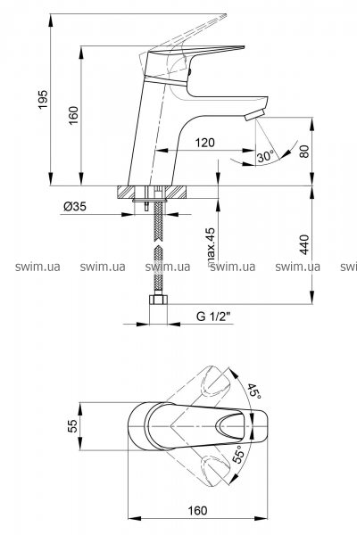 - Комплектация: смеситель, гибкая подводка, крепежи.