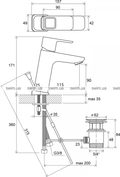 - Высота смесителя 170 мм - увеличенная высота, большой комфорт