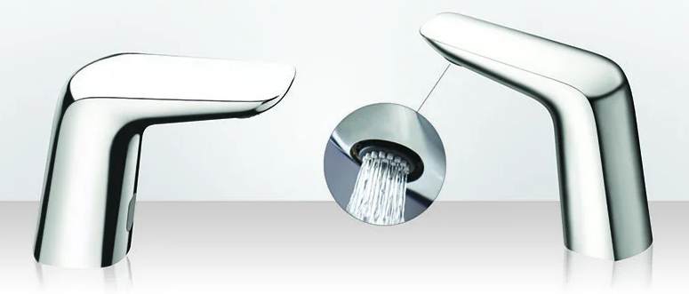 - Экономичность потребления энергоресурсов. Настройка температуры и воды производится при помощи вентиля, который располагается под мойкой, что особенно важно для санузлов общественных объектов. За счет подобной настройки обеспечивается защита пользователя от ожога, так как смеситель подает воду с той максимальной температурой, которая предустановлена. Кроме того, особенность работы сенсора устраняет возможность "забыть кран в открытом положении" - без регистрации движения в зоне действия сенсора автоматически производится отключение подачи воды.