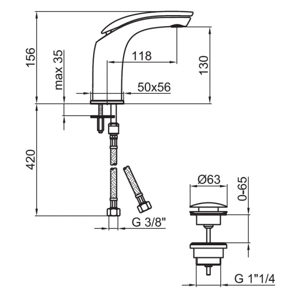 - Однорычажный смеситель для умывальника с дистанционным сливом