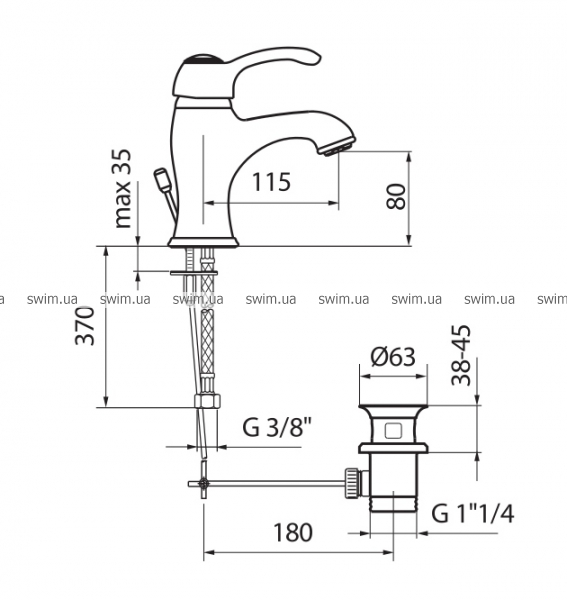 - Однорычажный смеситель для умывальника с дистанционным сливом