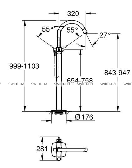 - Для установки необходим 45984001 Монтажный набор для напольного смесителя GROHE