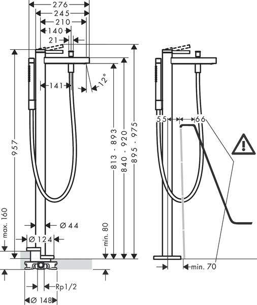 - состоит из: смеситель для ванны напольный, ручной душ "палочка", шланг для душа, держатель для душа