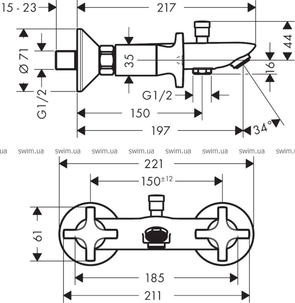 - расход воды изливом на ванны при 3 барах: 26 л/мин