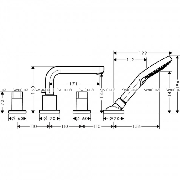 - Максимальное расстояние, на которое вытягивается ручной душ: 1,10 м
