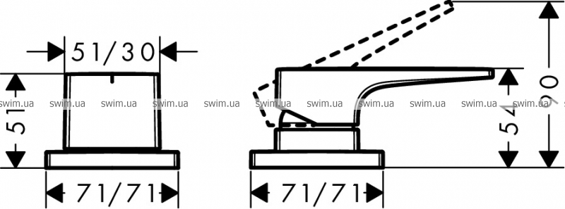 - Горизонтальний, на борт ванни