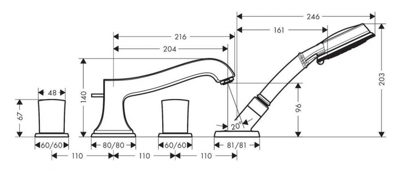 Смеситель для ванны Hansgrohe Metropol Classic 31315000 Смеситель для ванны Hansgrohe Metropol Classic 31315000