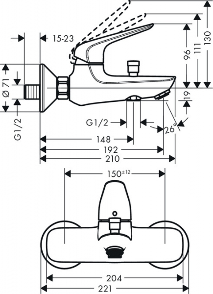 - расход воды изливом на ванны при 3 барах: 20 л/мин