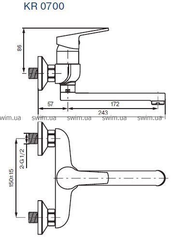 Смеситель для ванны и душа Koller Pool Kvadro KR0700