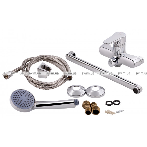 - Комплектация Смеситель, лейка для ручного душа, душевой шланг, кронштейн для ручного душа, крепежи.