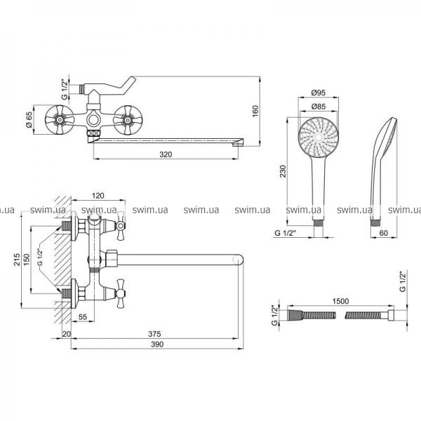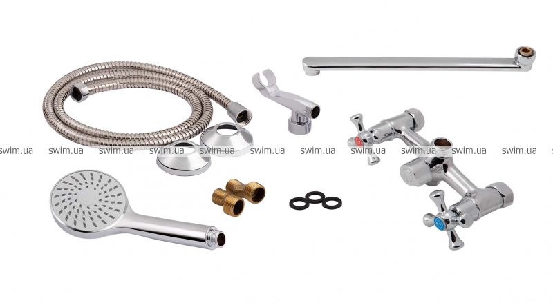 - Комплектация Смеситель, душевой шланг, лейка для ручного душа, крепежи.