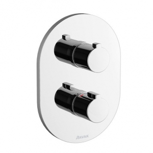 Термосмеситель скрытого монтажа в дизайне концепции Chrome, включающей в себя все необходимое оборудование для ванной комнаты. Смеситель содержит верхнюю часть и основной корпус из латуни, предназначенный для встраивания в стену. Переключатель позволяет выбирать режимы: ванна/душ, при использовании в душевом уголке позволяет переключаться с верхнего душа на ручной.