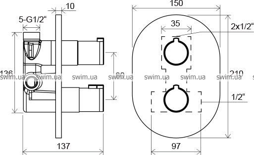 • подходит: к ваннам (заполнение переливом и вывод для ручного душа) или душевым уголкам с фиксированным и ручным душем